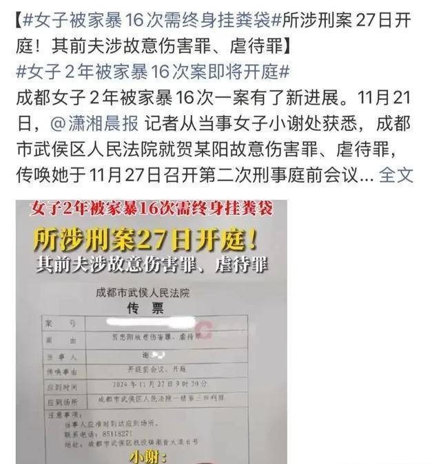 结婚两年时间,小谢惨遭前夫贺某阳家暴16次,甚至,连怀孕都没能躲得过渣男的暴打! 2023年,小谢为了结束这场噩梦,向法院提交了离婚申请。 结果这一举动彻底惹怒了前夫,他将小谢拖至酒店持续殴打了八个小时,导致小谢肋骨骨折、十二指肠破裂、左肝挫裂、右肾丧失功能。 经过抢救,虽然保住了性命,却不得不终身挂着粪袋,再也无法像正常人一样生活! 然而更令人愤怒的是——贺某阳被捕后,法院数罪并罚,竟然只判了11年有期徒刑! 要知道,即便贺某阳已被关押,小谢仍然活在他的阴影之下: 贺家转移夫妻共同财产200万,贺某阳在押期间不断写信威胁“做人留一线”,贺父更是公然叫嚣:“不签谅解书就杀你全家!” 如今的小谢,虽努力尝试重启人生,却无时无刻不活在恐惧中—— 11年后,那个恶魔出狱之时,她又将面临什么? 婚姻,不应该是家暴的庇护所。 在采访中,小谢也曾透露,自己之前曾因被家暴而报警了6次,但都不了了之,直到她被打成了重伤致残,才得到重视。 米粒妈在想,女性被家暴,更深远而隐秘的苦痛,在于社会支持系统的滞后和无力。 凭什么一旦暴力被冠上“家”的名号,就能从故意伤害、杀人未遂罪中被轻轻摘出,甚至被淡化伪“家务事”? 家暴,不是“家事”,是“刑事”。 赵箫泓在长期家暴后选择奋起反抗,结果从受害者,变成了犯罪者。 小谢通过法律途径解决问题,身体永远落下残疾,却依然害怕被报复。 她们的经历,就像是镜子的两面,照见了家暴受害者殊途同归的悲剧: 在结构性暴力面前,个体的选择空间往往被压缩到了极致。 如果小谢不选择离婚,那么,她有可能成为下一个赵箫泓。 如果赵箫泓不选择反杀,那么她也完全有可能成为小谢。 当人们为赵箫泓的影后桂冠喝彩时,很容易忘记这顶桂冠的重量—— 那是用十年青春、一生创伤换来的。 这代价,实在太大了,没有一个女性应该经历这种抉择。 同时,我们必须要明白,赵箫泓的成功,具有太多不可复制的偶然。 这其中有导演秦晓宇的发现与坚持,有她自身具备的文艺才能,有无数机缘巧合的叠加。 苦难就是苦难,永远不要相信苦难是值得的。 苦难不会让人变得更加强大,只会留下抹不去的心理创伤。 我想说,真正的女性力量,不在于能承受多少苦难,而在于有勇气对苦难说“不”。 这份说“不”的勇气,需要被看见,更需要被承接。 就像赵箫泓在获奖后说的: “希望全世界的姐妹们,在遇到困境时,看到我们的电影,能从中得到温暖、鼓励和支持、力量。 这就是我做这部电影的最大意义了。”